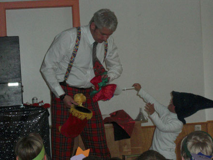In meiner Kinderzaubershow wird mit allerlei magischen Requisiten gezaubert: Seile, Ringe, Zeitungen, Tücher und vieles mehr. Dabei präsentiere ich kindgerechte Kunststücke aus verschiedenen Sparten der Zauberei – perfekt abgestimmt, um kleine Zuschauer zum Staunen, Lachen und Mitmachen zu bringen.
